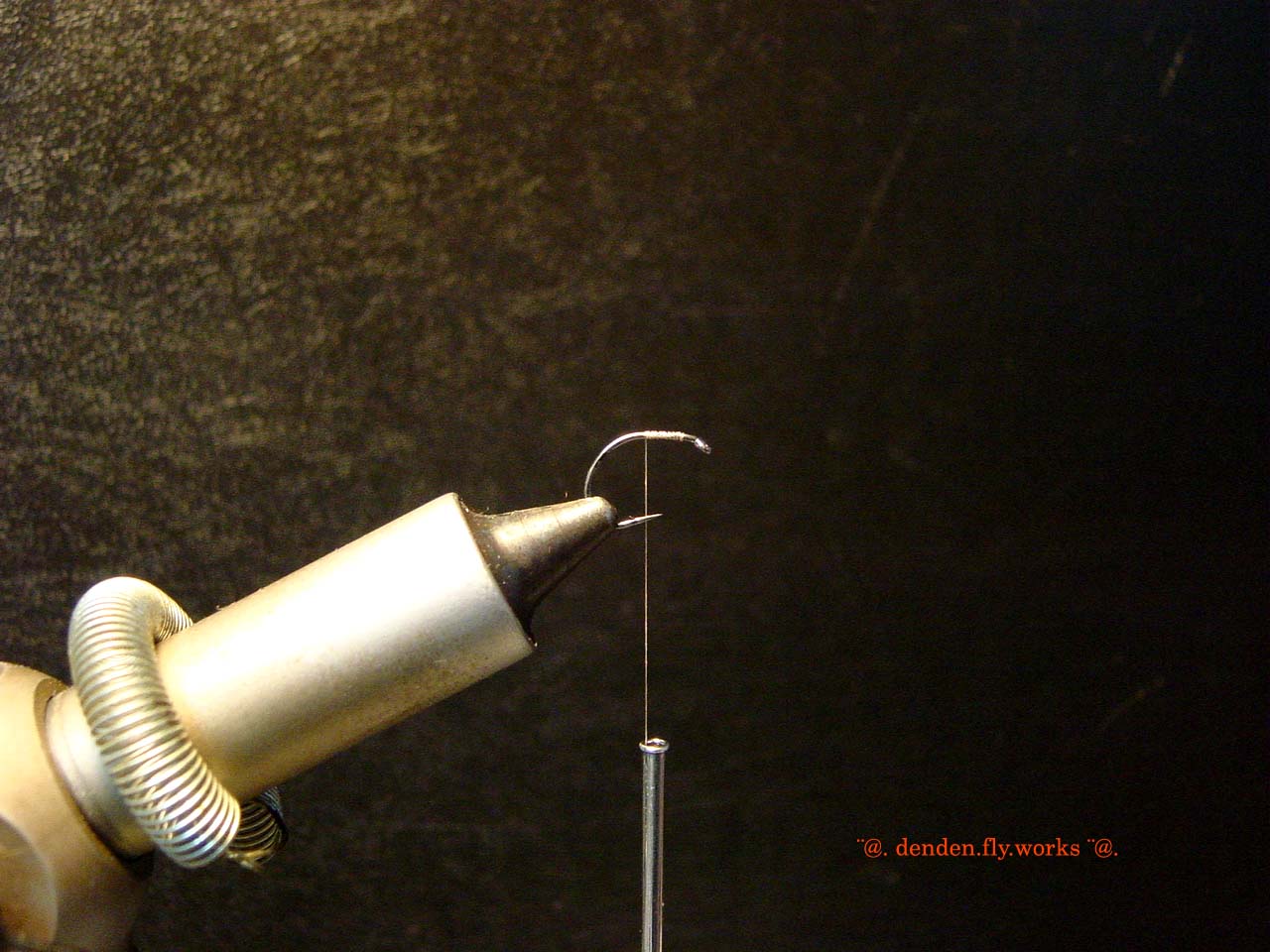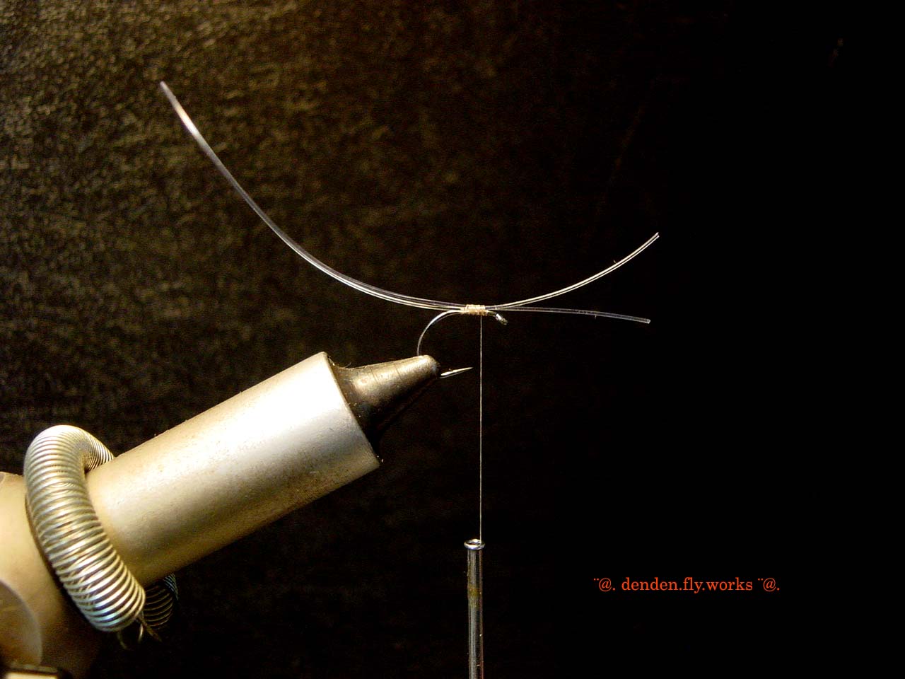 ⑤ スレッドをテールまで下巻きしたらボディとなるバイオットを取付けます。