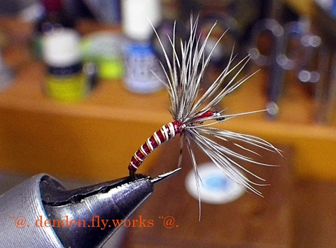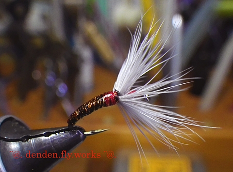 久しぶりに逆さ毛鉤を巻いてみました。(^_^)
